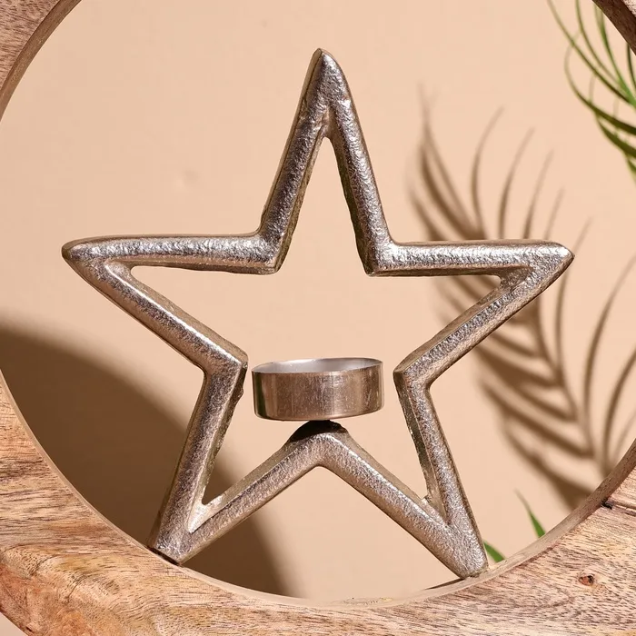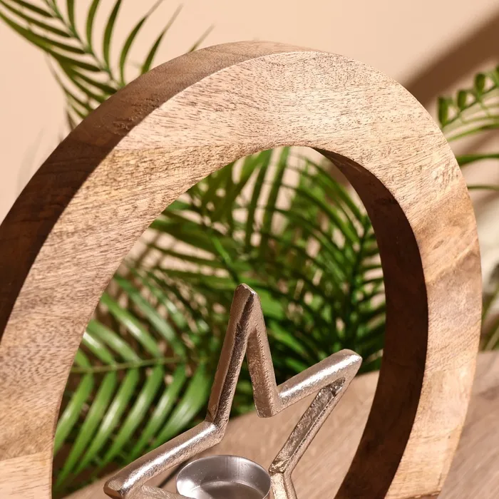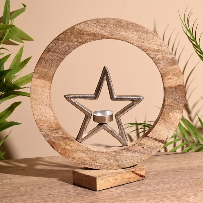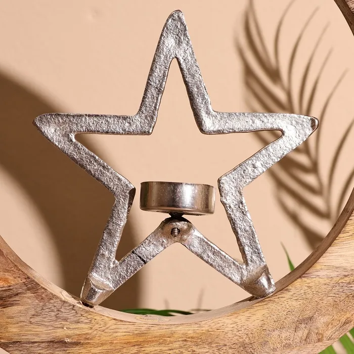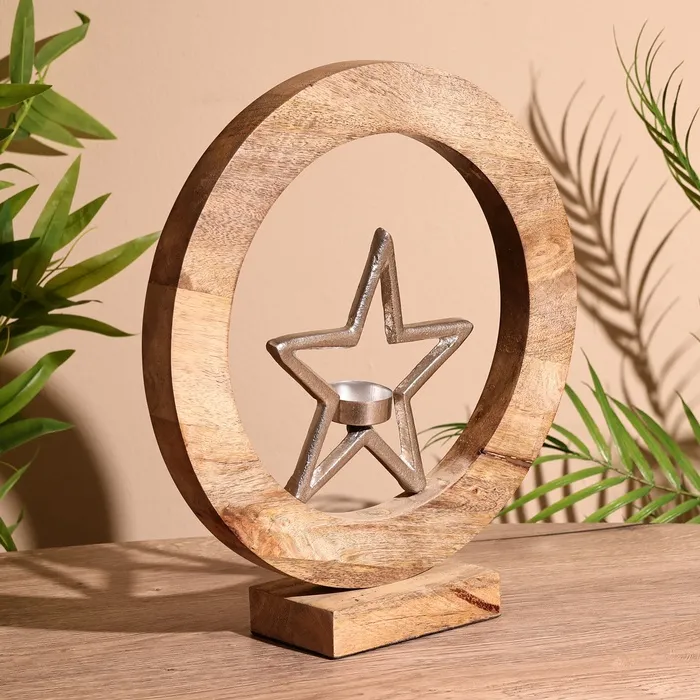 Подсвечник в деревянном кольце "Звезда" 30х8х33 см — Характеристики
