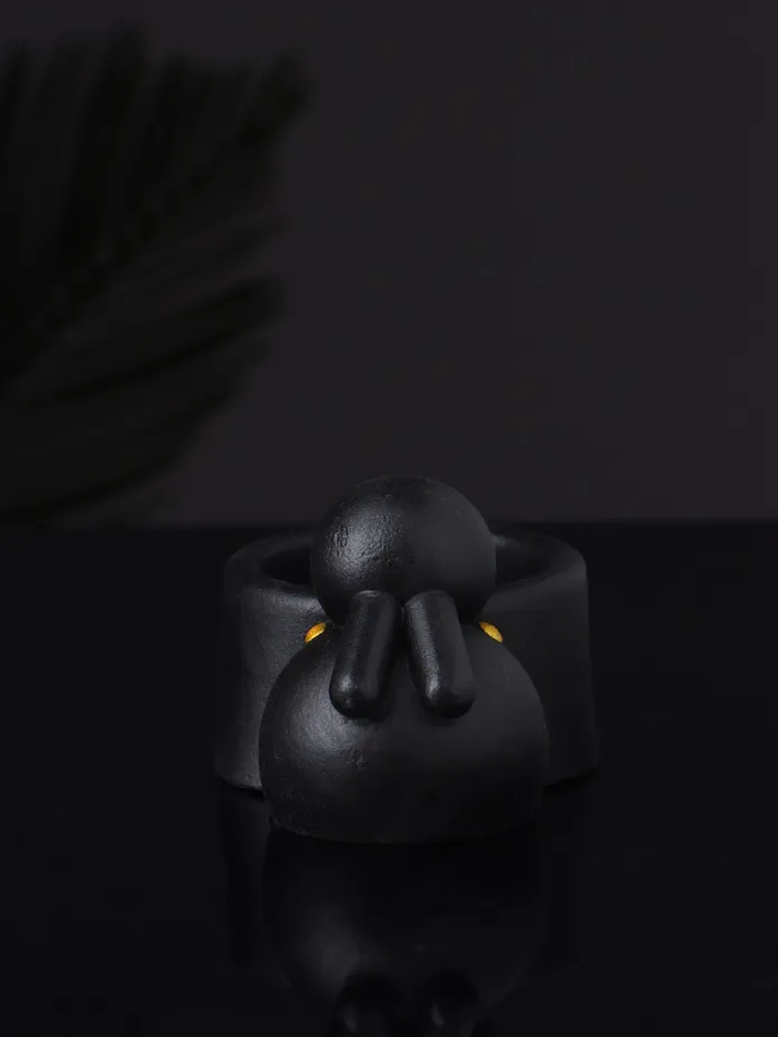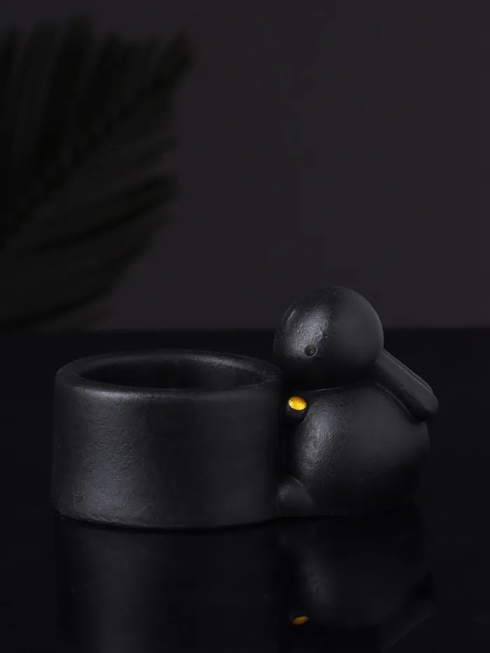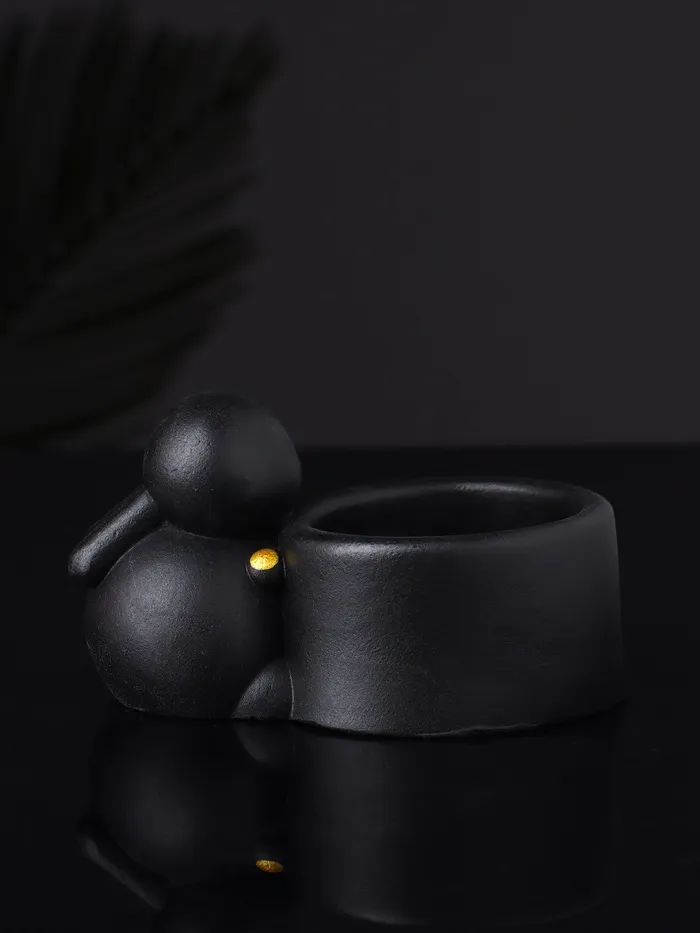 Подсвечник "Заяц с чашей" 8х6х4, черный