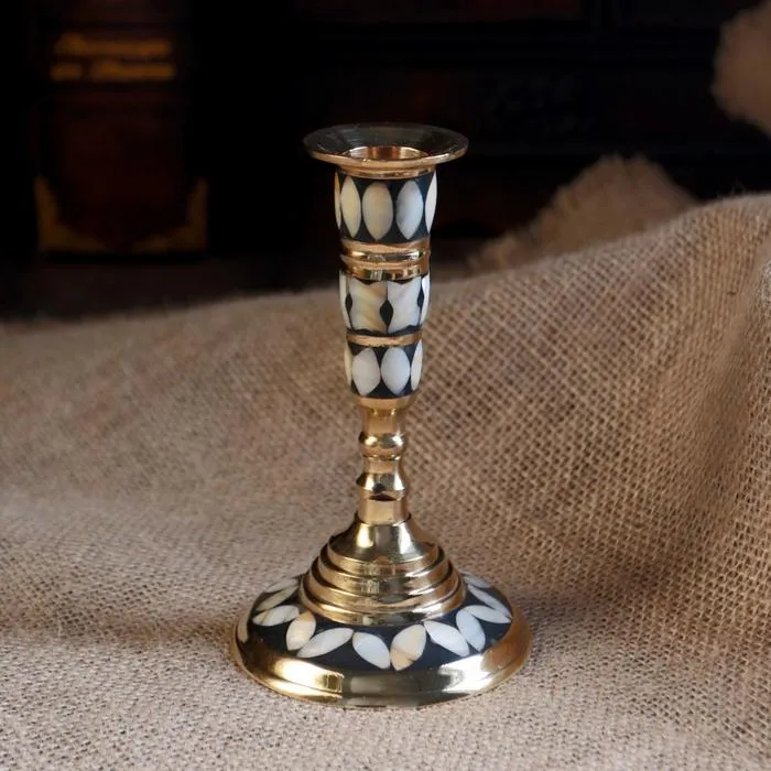 Подсвечник "Зебра" латунь, перламутр 8х8х13 см