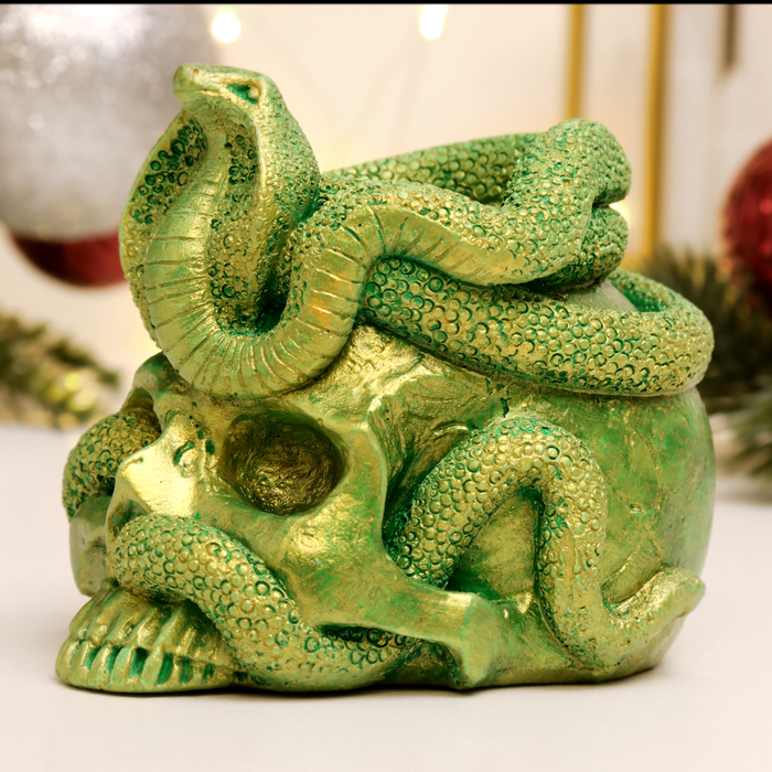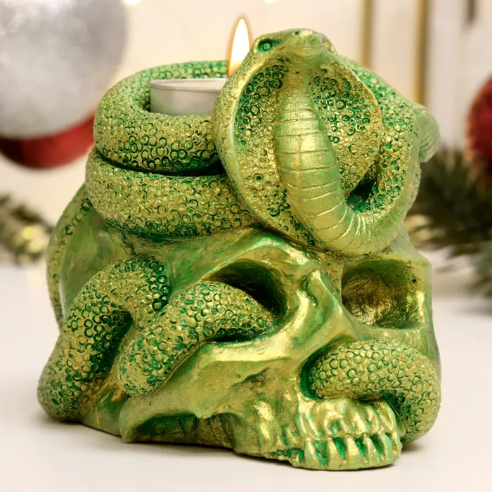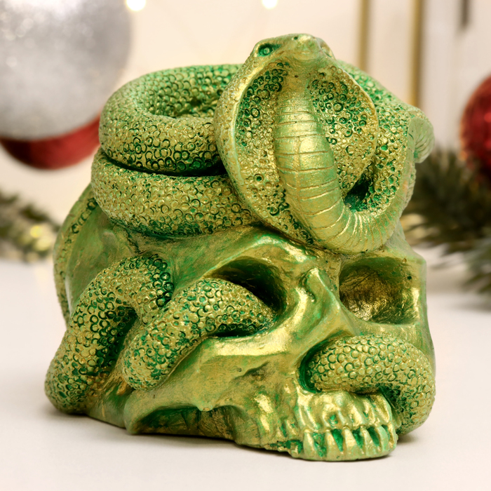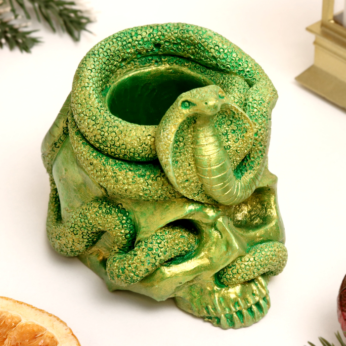 Подсвечник "Змея на черепе" зеленый с позолотой, 11х10х8см — Характеристики