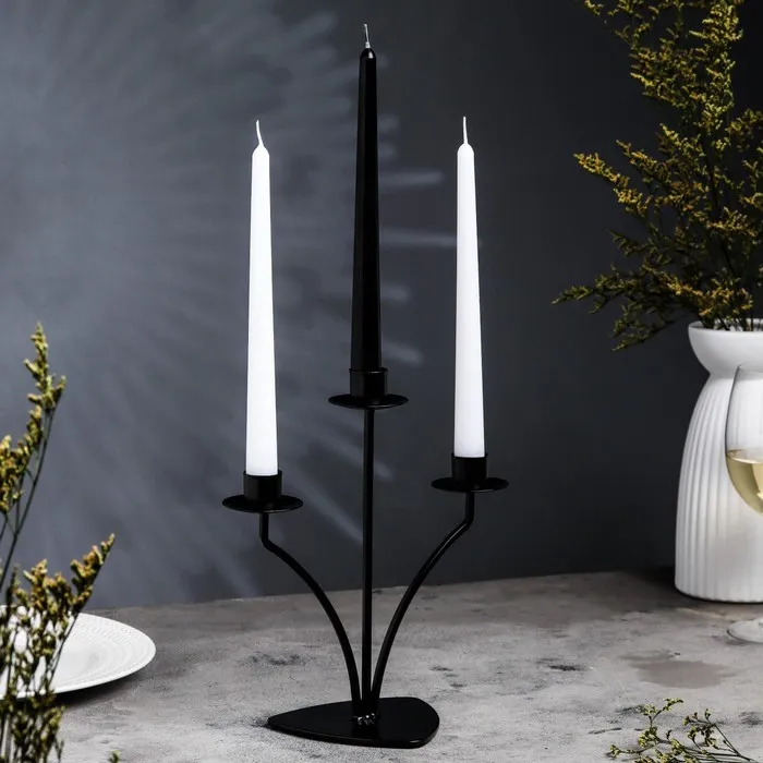 Подсвечник металл на 3 свечи "Диез", 10,5х27 см, черный