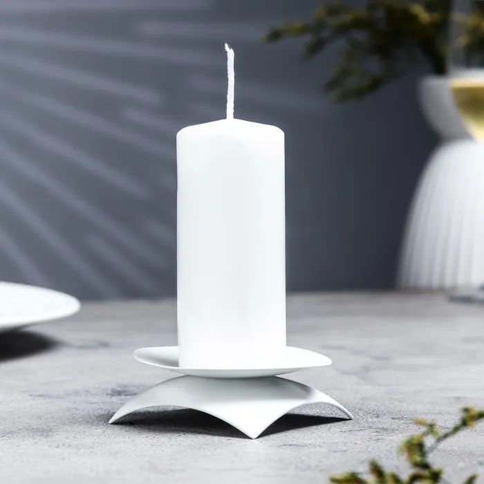 Подсвечник "Кварта Н" металл на 1 свечу, 9,5х3 см, белый