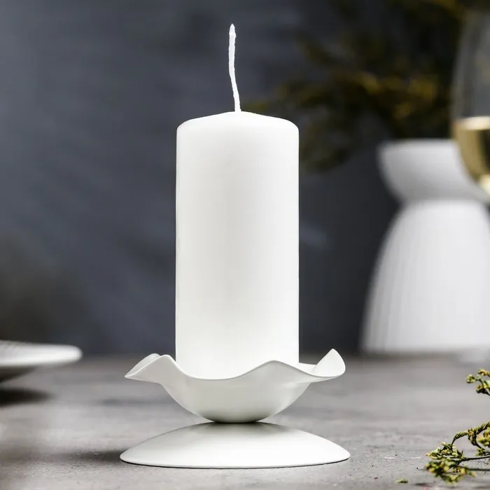 Подсвечник "Лотос 2Н" металл на 1 свечу, 7,5х2,5 см, белый