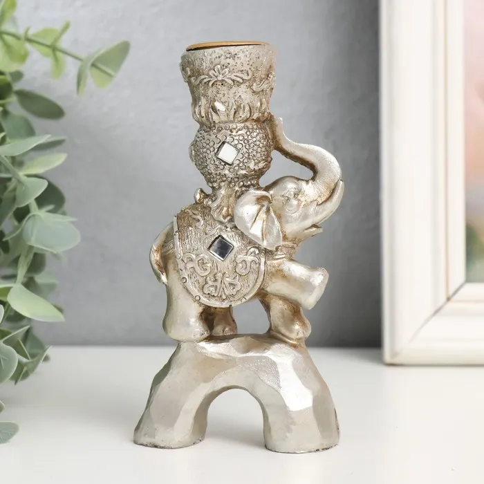 Сувенир полистоун подсвечник зеркальные вставки "Индийский слон на камне" 12,5х6,5х3 см