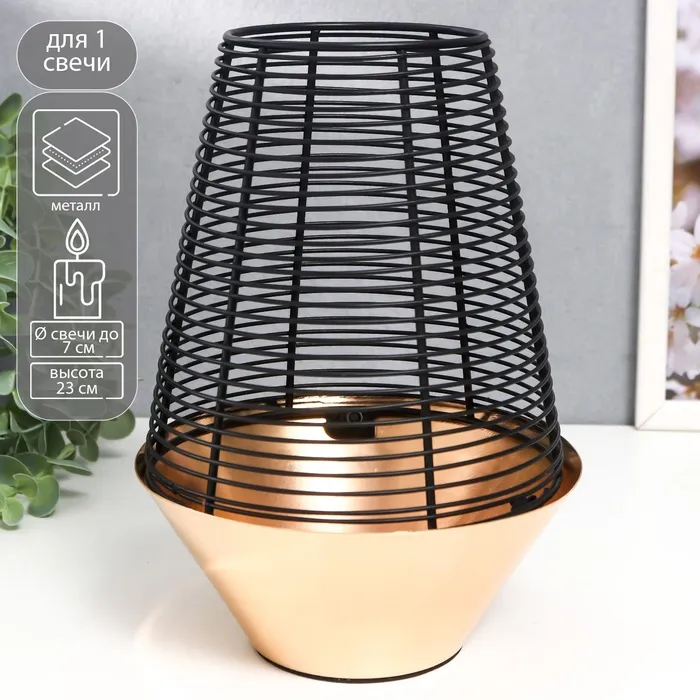 Подсвечник металл на 1 свечу "Лофт. Прутья" чёрный с золотом 23х16х16 см