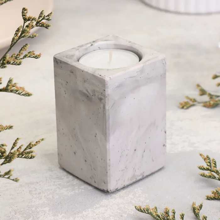 Подсвечник "Квадрат" из гипса, 5х8см,мрамор с чёрными полосками