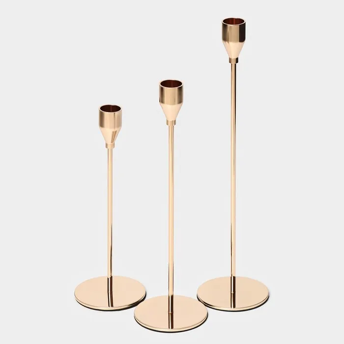 Подсвечники металлических Magistro «Классика», набор 3 шт., 22.5/27/32.5×8 см, золотистые — Характеристики