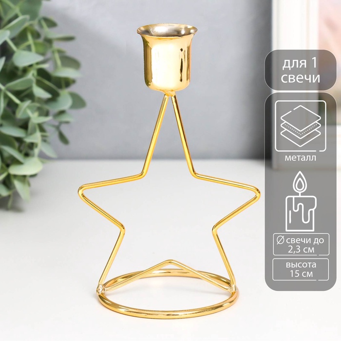 Подсвечник металл на 1 свечу "Звезда" d-2-2,3 см золото 10,5х7,5х15 см