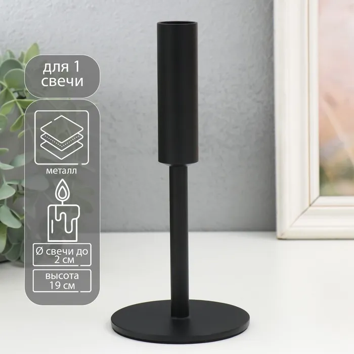 Металлический подсвечник на 1 свечу «Симпл», d=2 см, чёрный, 9×19 см