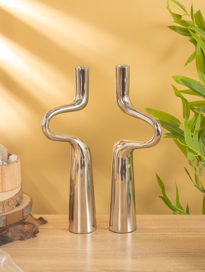 Подсвечники «Сплетение», набор 2 шт., 11×6×34 см, алюминий