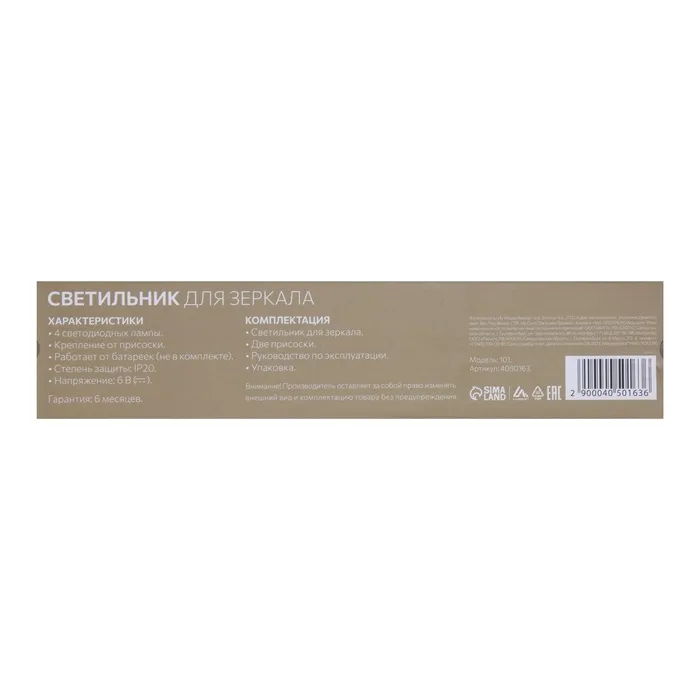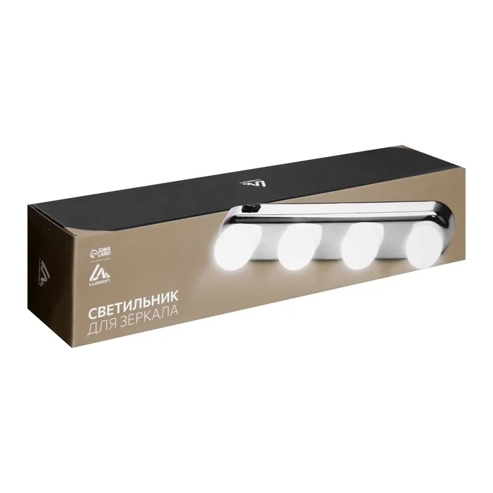 Подсветка для зеркала Luazon 101, 4 лампы, на присосках, 4хАА (не в комплекте) — Характеристики