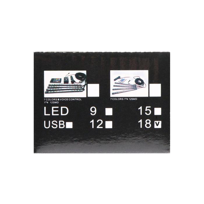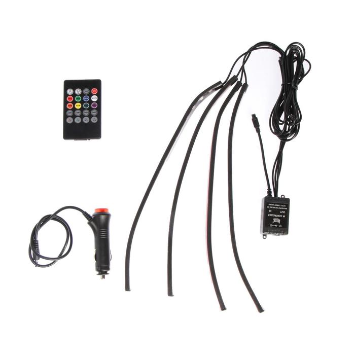 Для управления системой используется RGB-контроллер: установите цвет и режим свечения. Настройте смену подсветки под музыку — для этого блок управления оснащён встроенным микрофоном. Достаточно включить музыку в автомобиле, и диоды создадут световые переходы в такт музыкальному сопровождению.