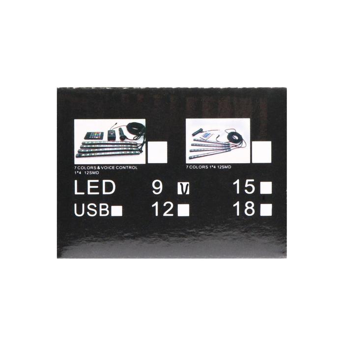 Подсветка салона 9 LEd=5050, 14 см, пульт, светомузыка, мультисвет RGB, 4 шт.