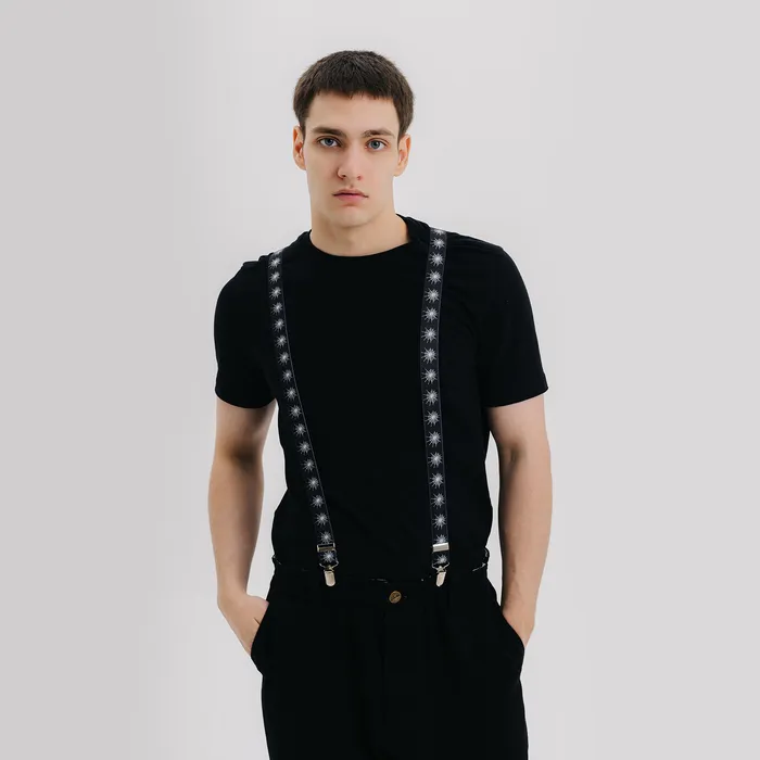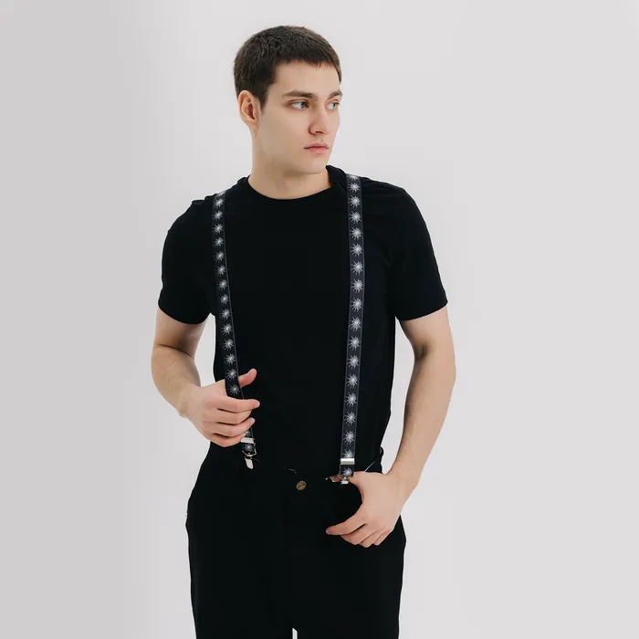 - Подтяжки фиксируются на одежде с помощью металлических клипс.