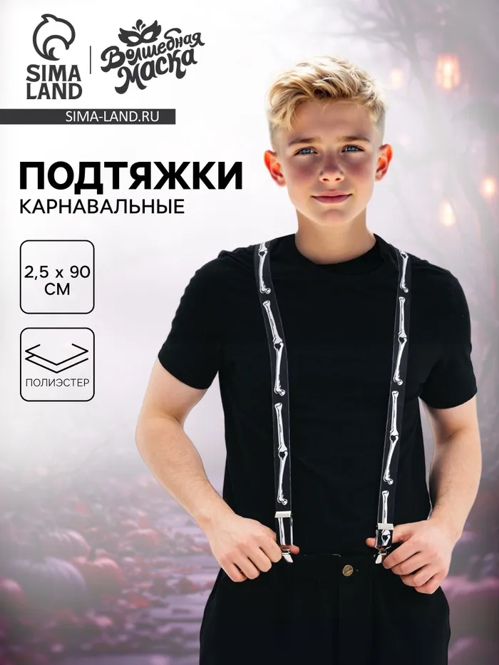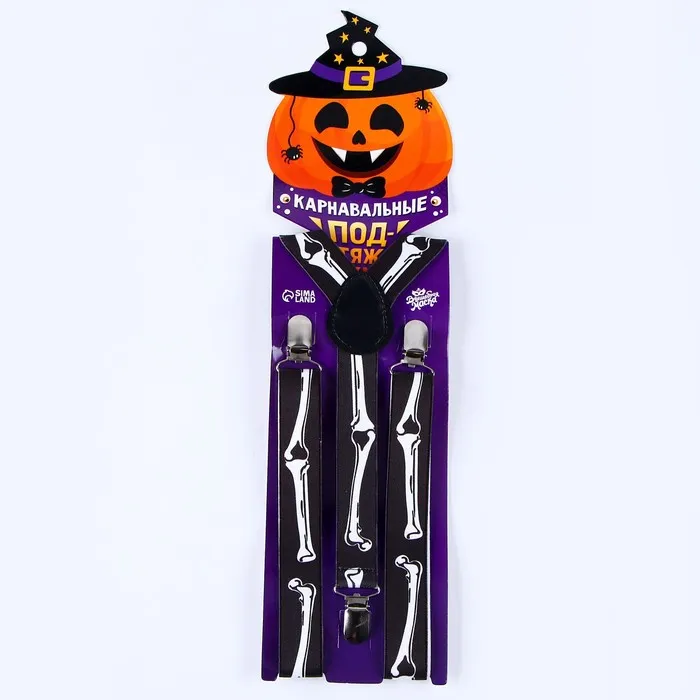 С карнавальными подтяжками «Скелетоша» вы станете настоящей звездой на тематической вечеринке и поразите всех гостей! Такой аксессуар эффектно дополнит ваш костюм. Создавайте яркие эмоции и воспоминания на целый год вперёд себе и ребёнку!