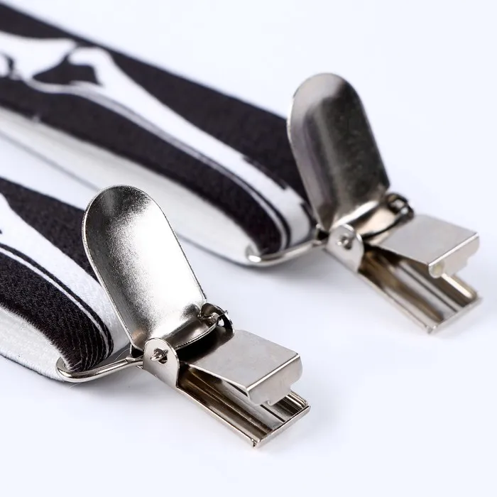 - Подтяжки фиксируются на одежде с помощью металлических клипс.