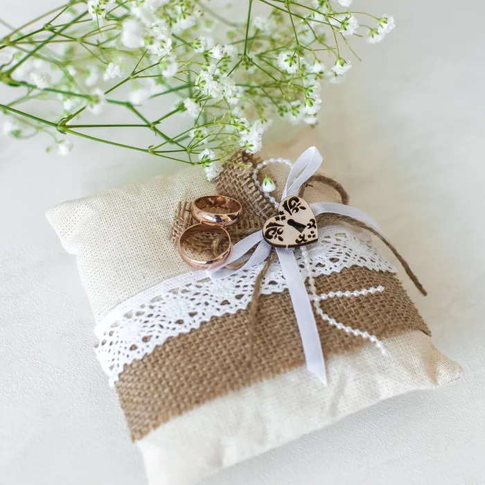 Согласно русским обычаям к обручальным кольцам могут прикасаться только сами молодожёны. Подушечка для колец станет важной деталью на торжестве. Она позволит перемещать кольца, не касаясь их.