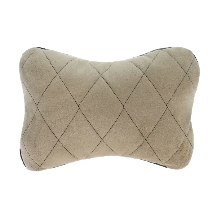 Подушка автомобильная косточка, на подголовник, велюр, бежевый, ромб, 16 х 24 см