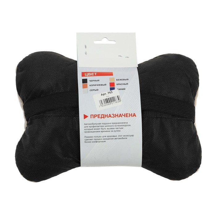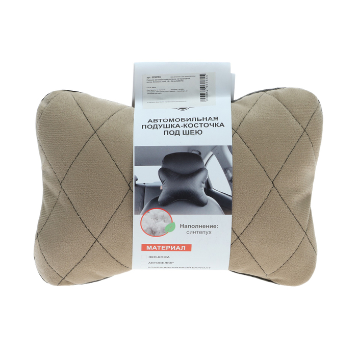 Подушка автомобильная косточка, на подголовник, велюр, бежевый, ромб, 16 х 24 см — Характеристики