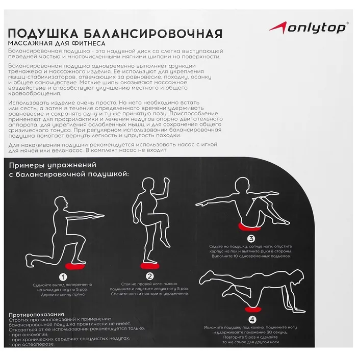 Подушка балансировочная ONLYTOP, массажная, d=32 см, цвет чёрный — Характеристики