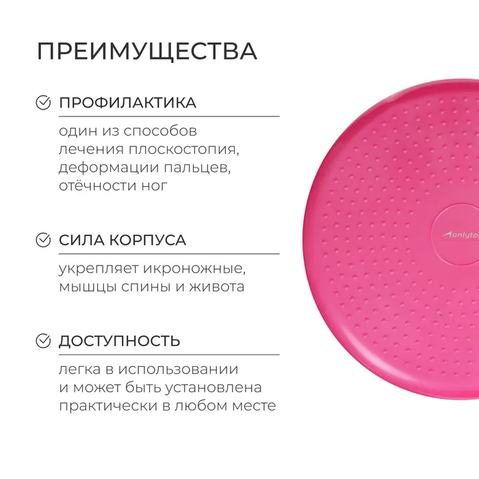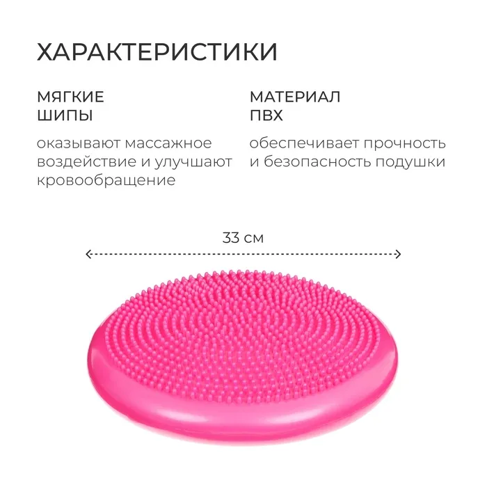 Подушка балансировочная ONLYTOP, массажная, d=35 см, цвет розовый — Характеристики