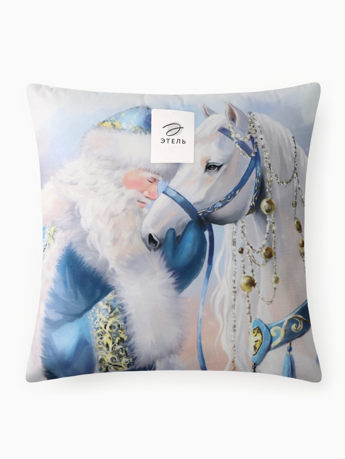 Эта подушка делает дом частью вашей истории — о предвкушении чуда, внутренней силе и внимании к деталям. Бело-синяя палитра и образ лошади работают вместе, чтобы передать атмосферу покоя, достоинства и внутреннего света. Поставьте её на диван — и почувствуйте: каждый раз, когда взгляд на неё, возвращается ощущение, что праздник уже здесь, и он живёт в спокойствии, силе и красоте маленьких, но значимых деталей.