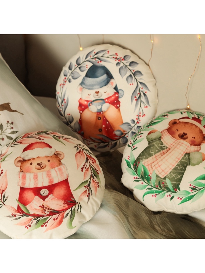 Настоящее волшебство начинается с мелочей. С первого снежка, с запаха мандаринов, с тишины после укладывания детей. Эта подушка — одна из таких деталей. Она не доминирует, но присутствует. Не шумная, не броская — но настоящая. Её можно использовать как элемент новогодней фотозоны, как мягкую деталь в интерьере или как подарок тем, кто любит получать не просто вещь, а ощущение — тишину, тепло, внутреннее спокойствие.