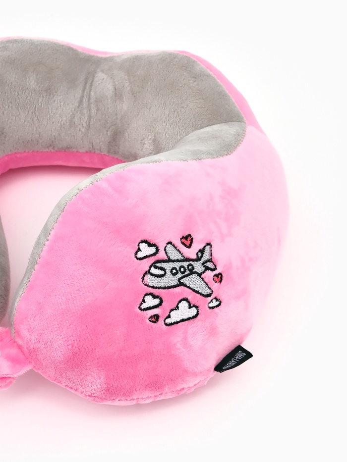Подушка для путешествий бархатная формовая «Самолёт», розовая