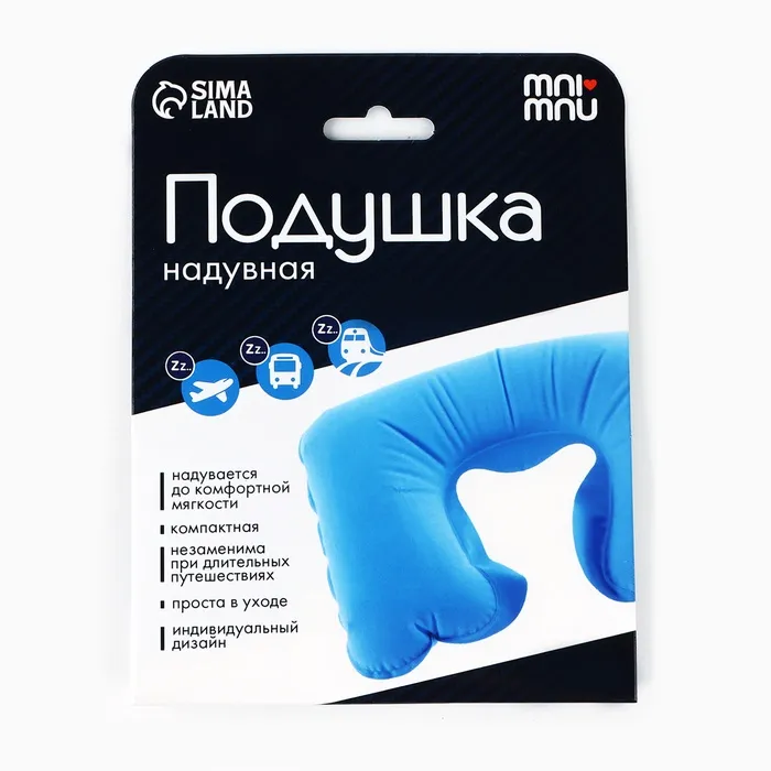 Подушка надувная для шеи, дорожная, 38×24 см, голубая