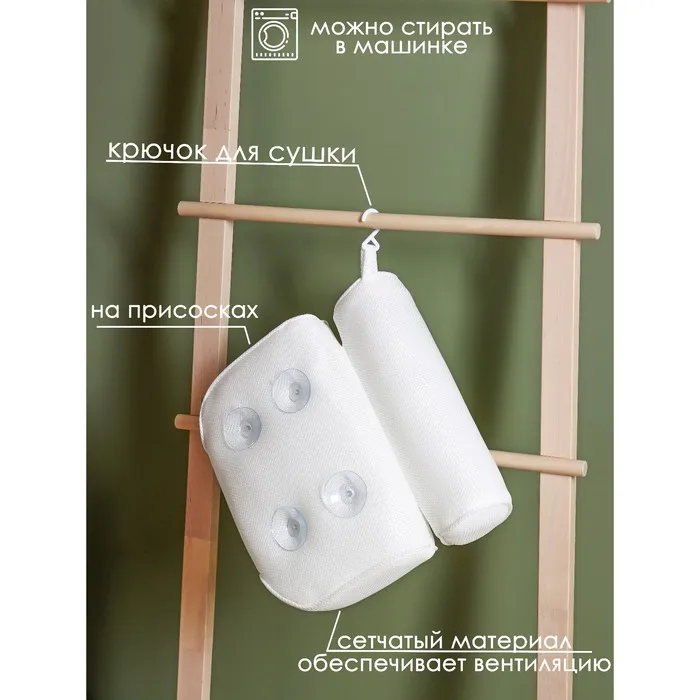 Мягкая и удобная подушка поможет вам расслабиться и получить ещё больше удовольствия от принятия ванны. Благодаря эргономичной форме, подголовник будет поддерживать шею и плечи и поможет расслабить уставшие мышцы.