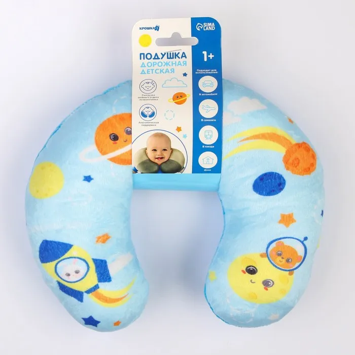 Подушка дорожная детская для путешествий «Космос», рогалик, Крошка Я — Характеристики