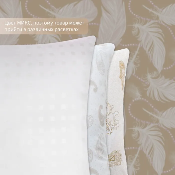 Подушка Экономь и Я 70*70 Лебяжий пух, чехол тик, цв. МИКС, п/э — Характеристики