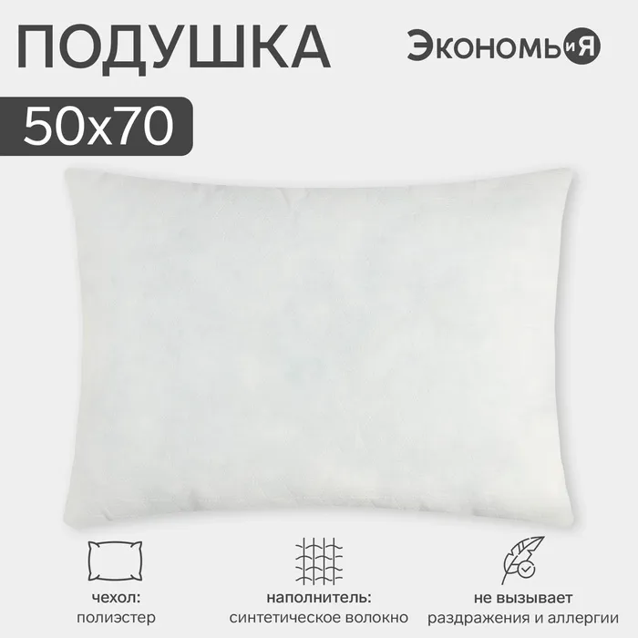 Подушка Эконом Лебяжий пух 70x70см, полиэфирное волокно, вес 480г — Характеристики