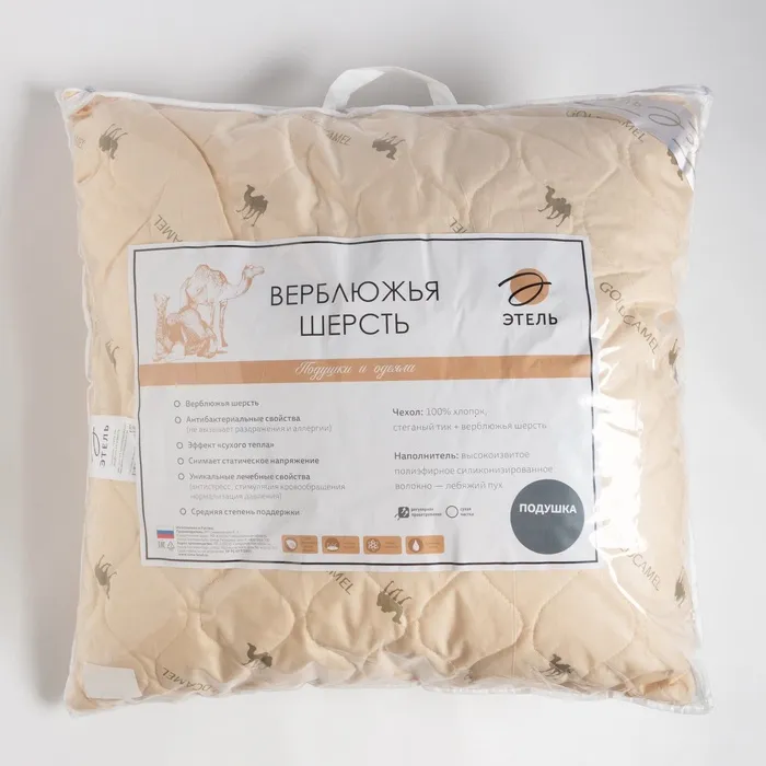 Подушка "Этель", подстёжка — верблюжья шерсть, 70х70 см, тик — Характеристики