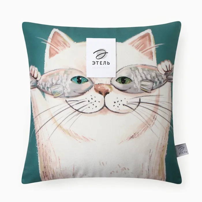 Подушка Этель "Счастливый котик" 40х40 см, велюр, 100% п/э — Характеристики