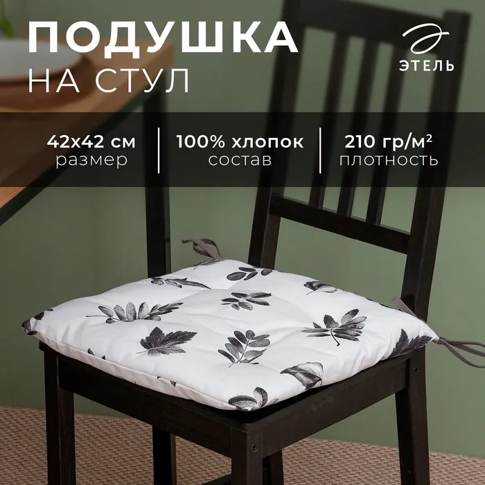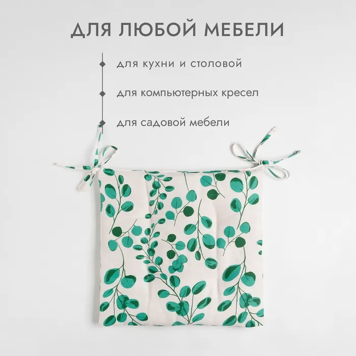 Подушка на стул Доляна "Эвкалипт" 42х42 см, 100% хл, рогожка 164 г/м2 — Характеристики