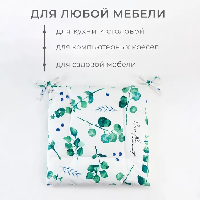 Подушка на стул "Этель" Eucalyptus 42х42см, 100% хл, саржа 190 г/м2 — Характеристики
