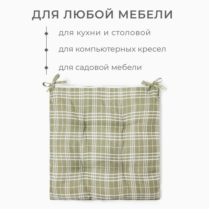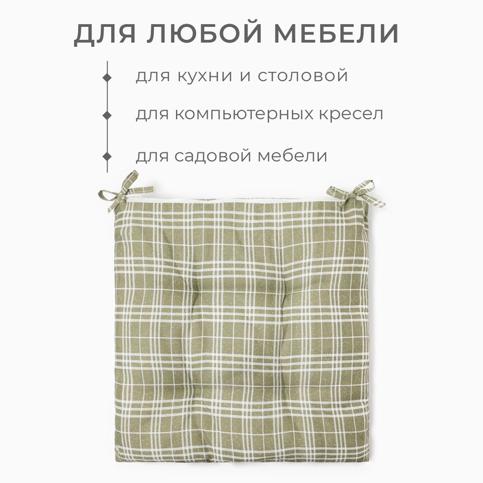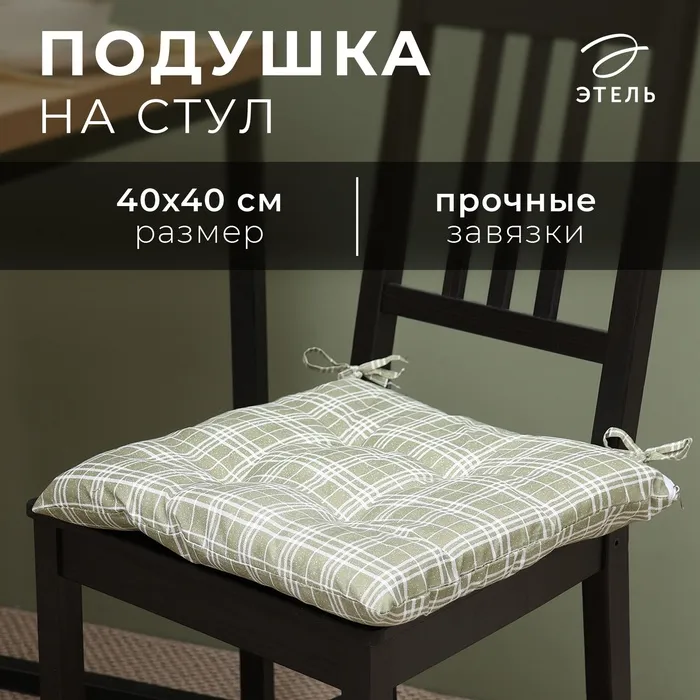 Подушка на стул Этель "Клетка" цв.хаки, 40х40 см, 100% п/э — Характеристики