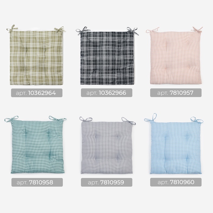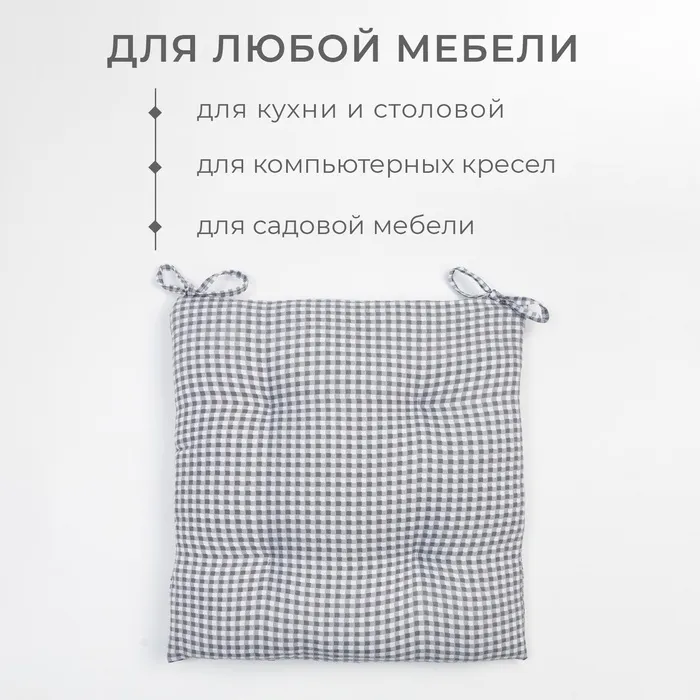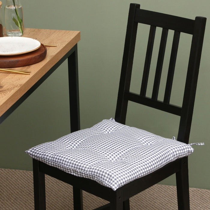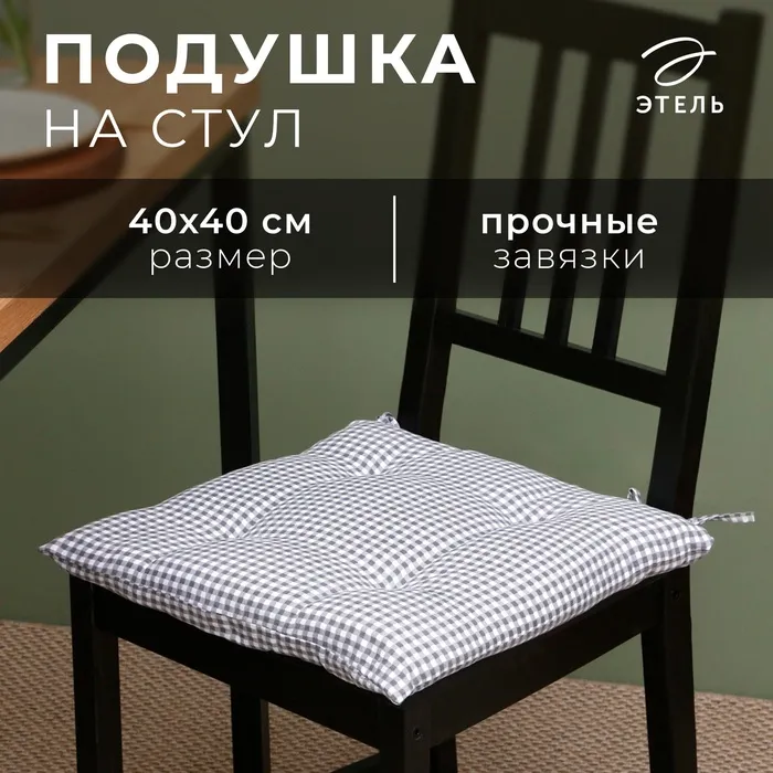 Подушка на стул Этель "Клеточка" 40х40 см, цв. серый, 100% полиэстер — Характеристики