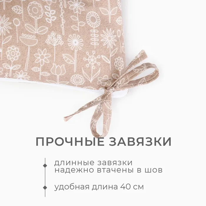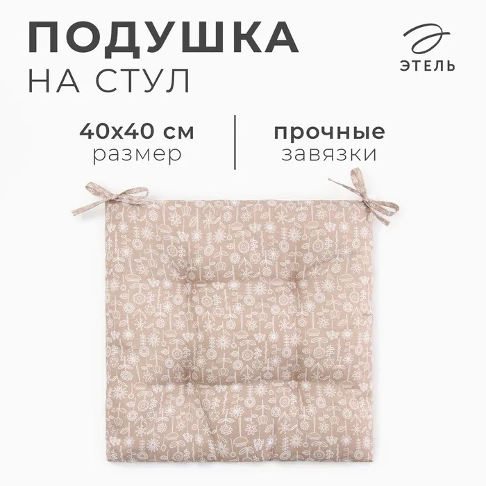 Подушка на стул «Этель. Цветы», коричневая, 40×40 см, 100% п/э — Характеристики
