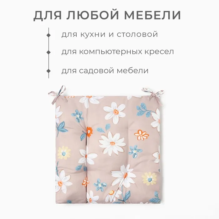 Подушка на стул Этель "Цветы" цв.серый, 40х40 см, 100% п/э — Характеристики