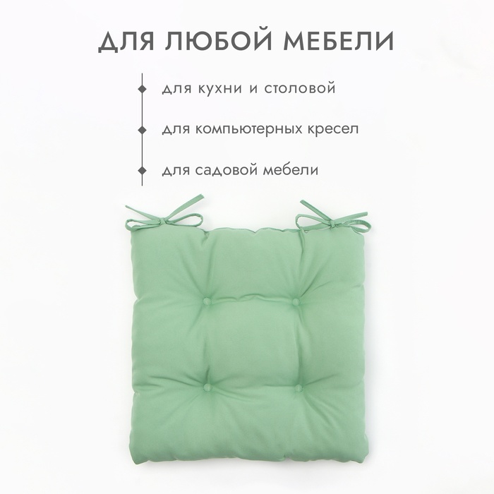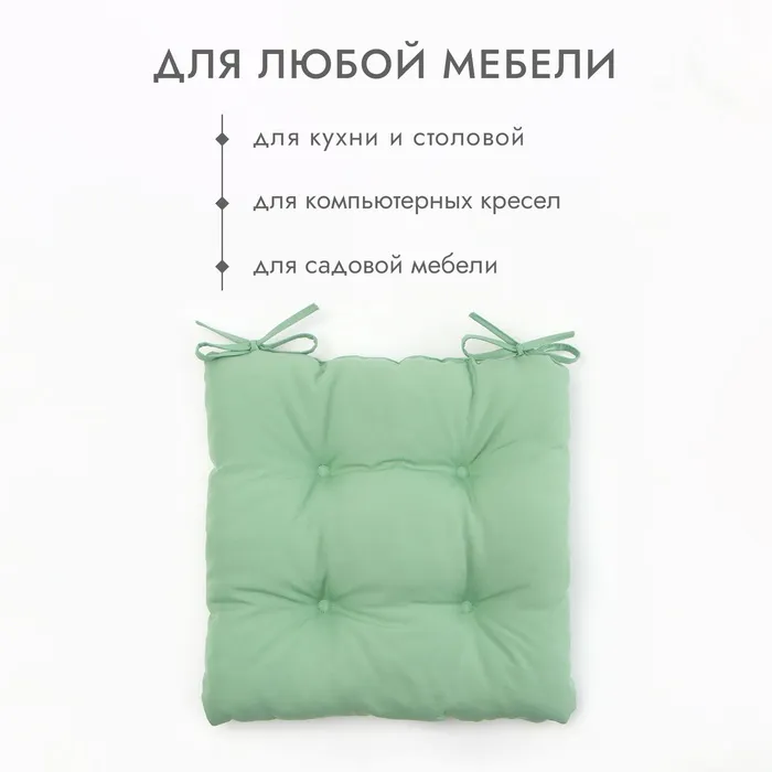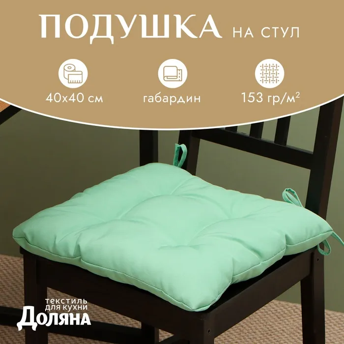 Подушка на стул с завязками Доляна цв. зеленый 40х40 см, 100% п/э, габардин 153 г/м2 — Характеристики