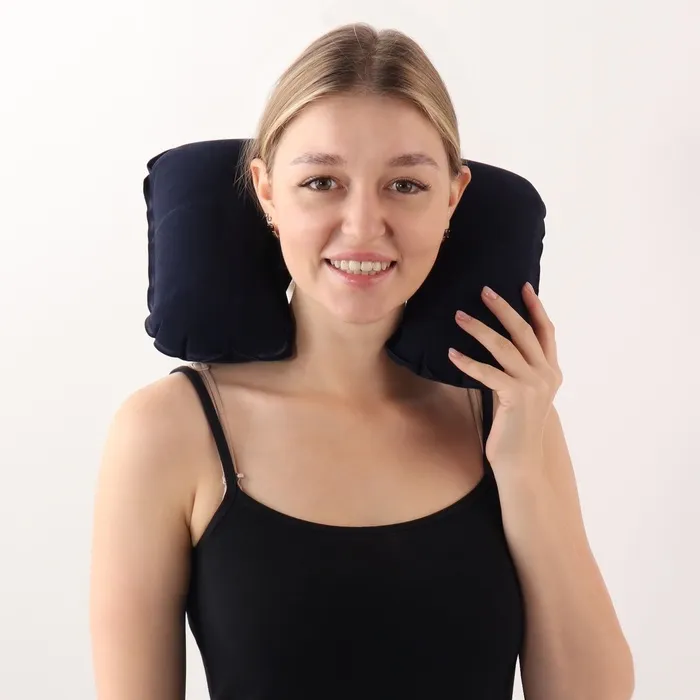 Подушка выполненна в приятном синем цвете, что поспособствует спокойному сну. Благодаря тому, что подушка надувная - её легко можно взять в сумку или чемодан, она не займёт много места.