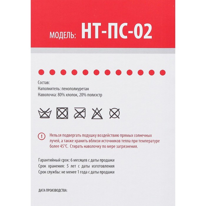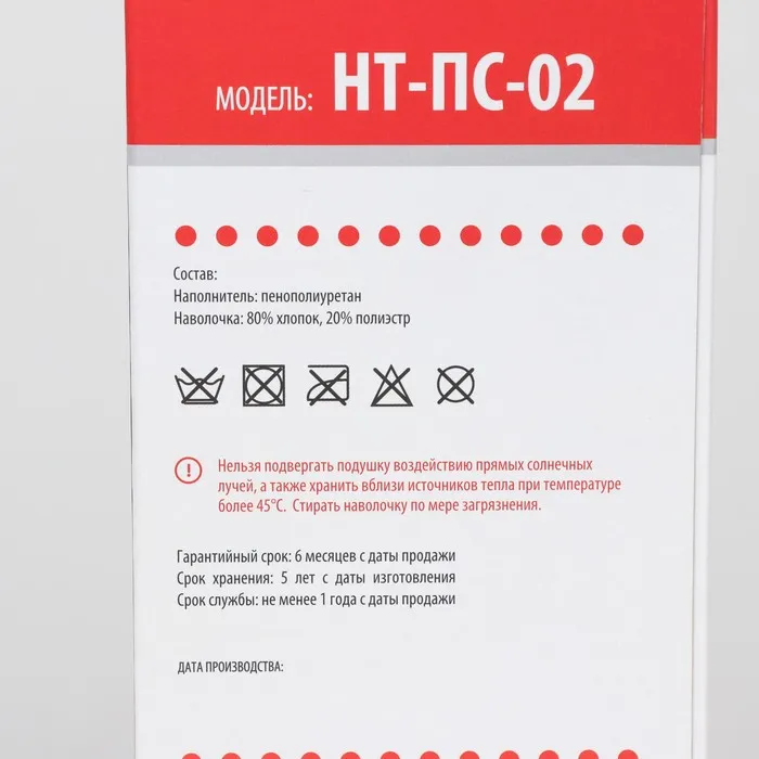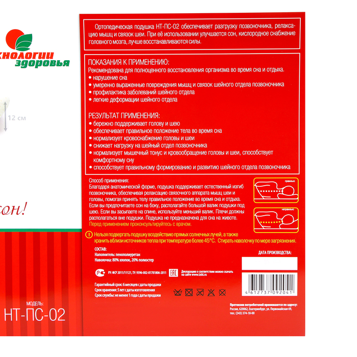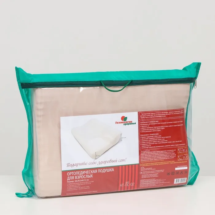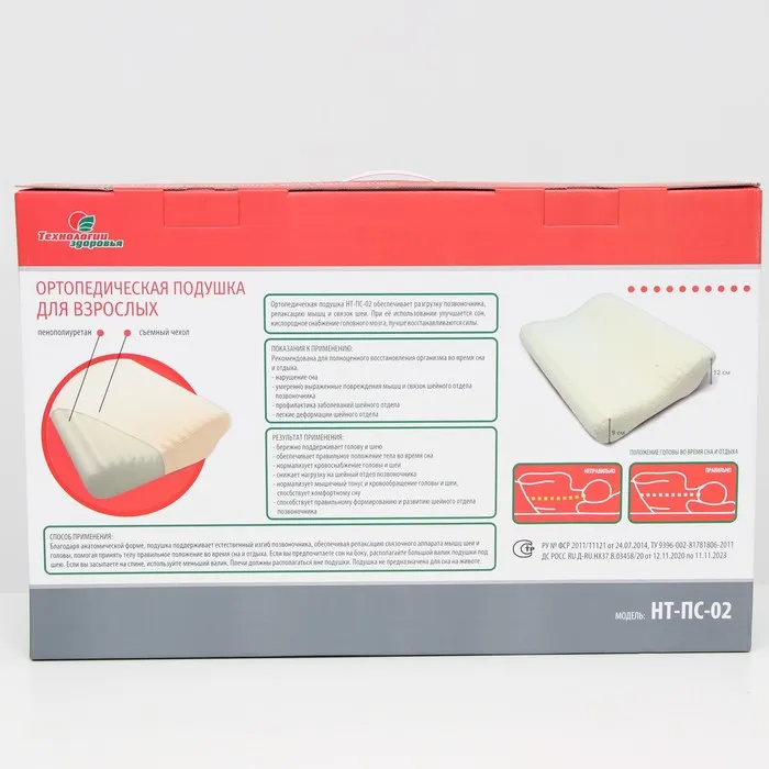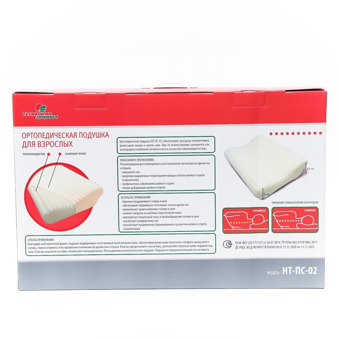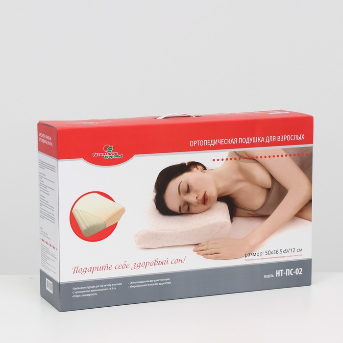 Подушка ортопедическая НТ-ПС-02, для взрослых, 50x36.5 см, валики 9/12 см — Характеристики