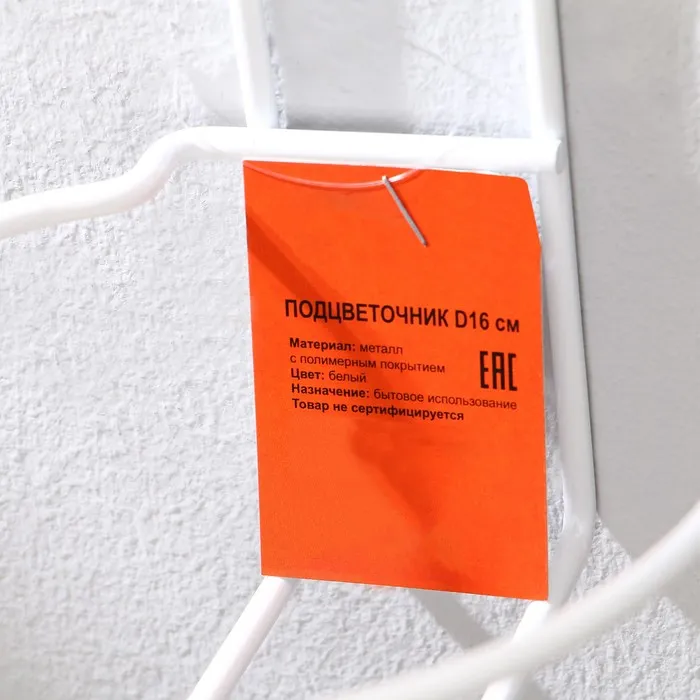 Подвес для кашпо, настенный, d = 16 см, белый, «Одиночка» — Характеристики