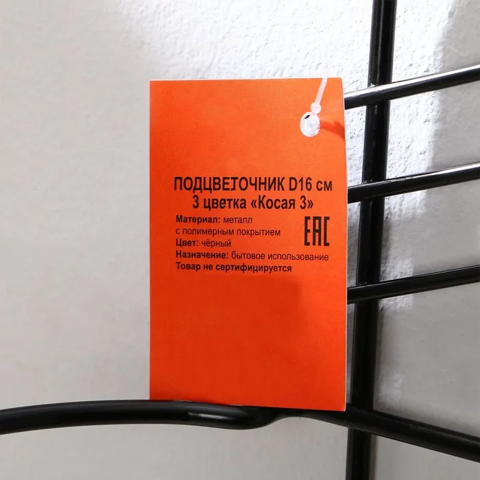 Подвес для кашпо настенный «Косая-3», d = 16 см, чёрный — Характеристики