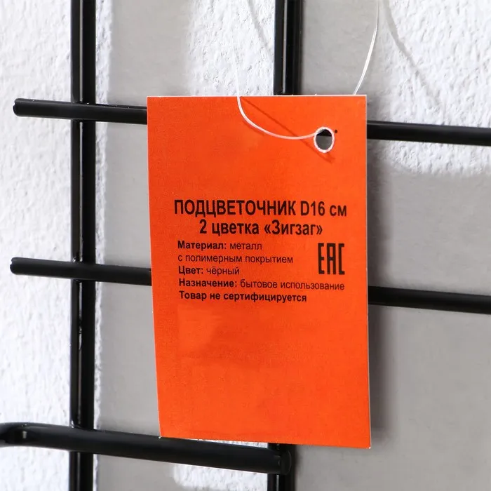 Подвес для кашпо, настенный, на 2 горшка, d=16 см, чёрный, «Зигзаг» — Характеристики