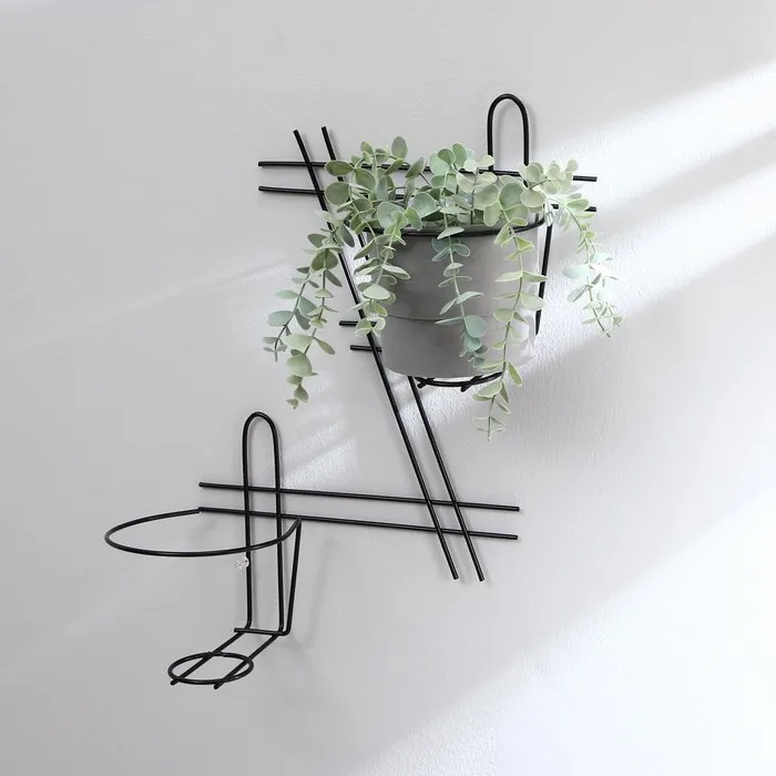 Подвес для кашпо, настенный, d = 16 см, чёрный, «Прямая-2»