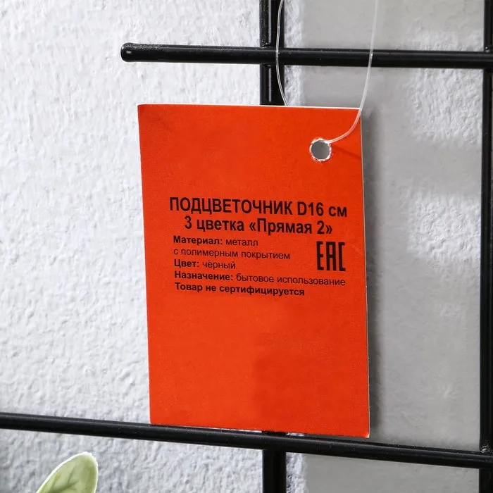 Подвес для кашпо настенный «Прямая-3», d=16 см, чёрный — Характеристики