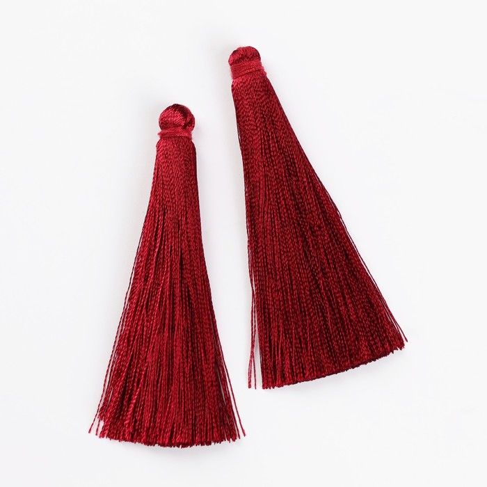 Каждая кисть имеет длину 6,5 см, что делает её достаточно выразительной, но при этом она не перегружает дизайн. Бордовый цвет придаёт украшениям насыщенность и глубину, что делает их идеальными для осенне-зимних коллекций или для добавления акцентов в праздничные украшения.